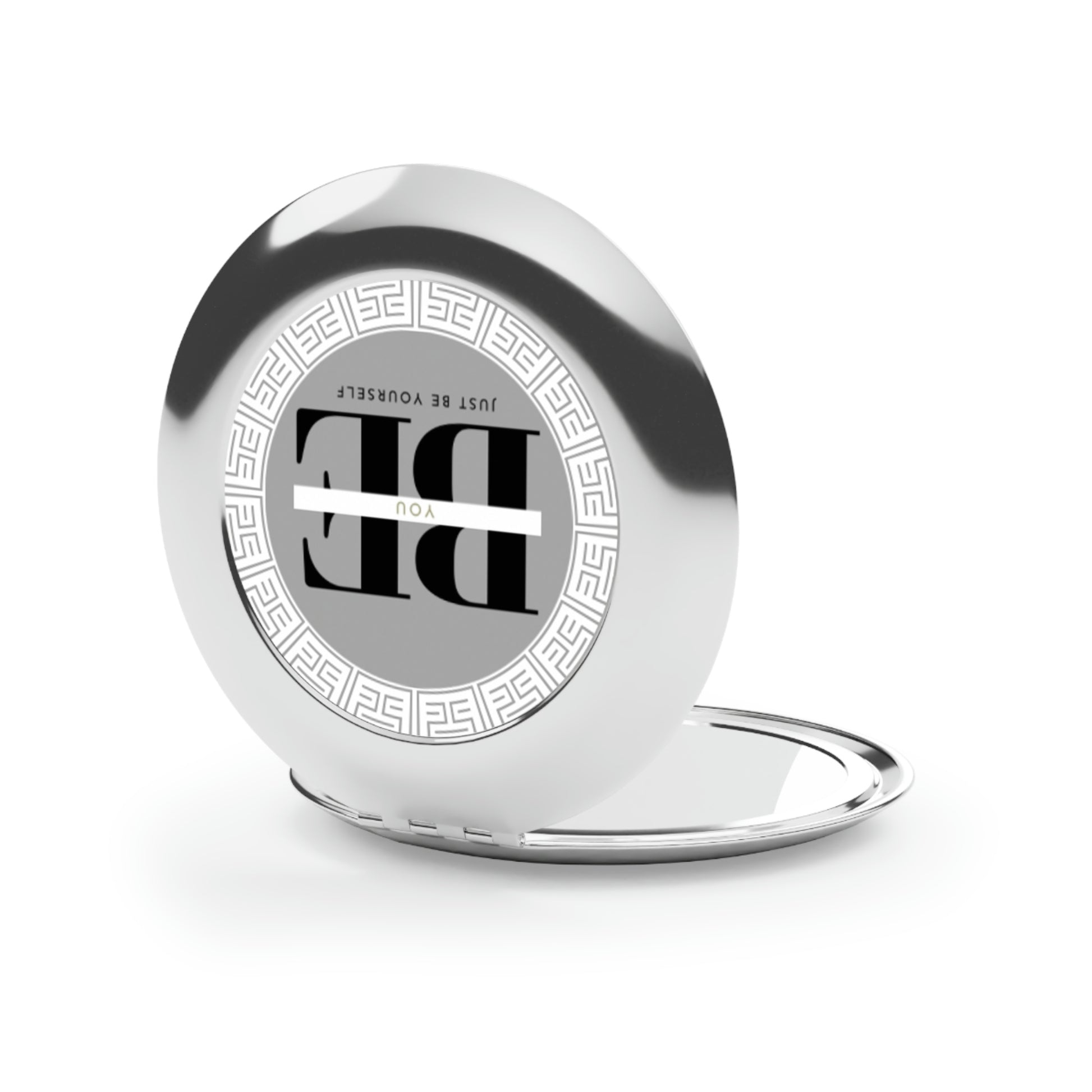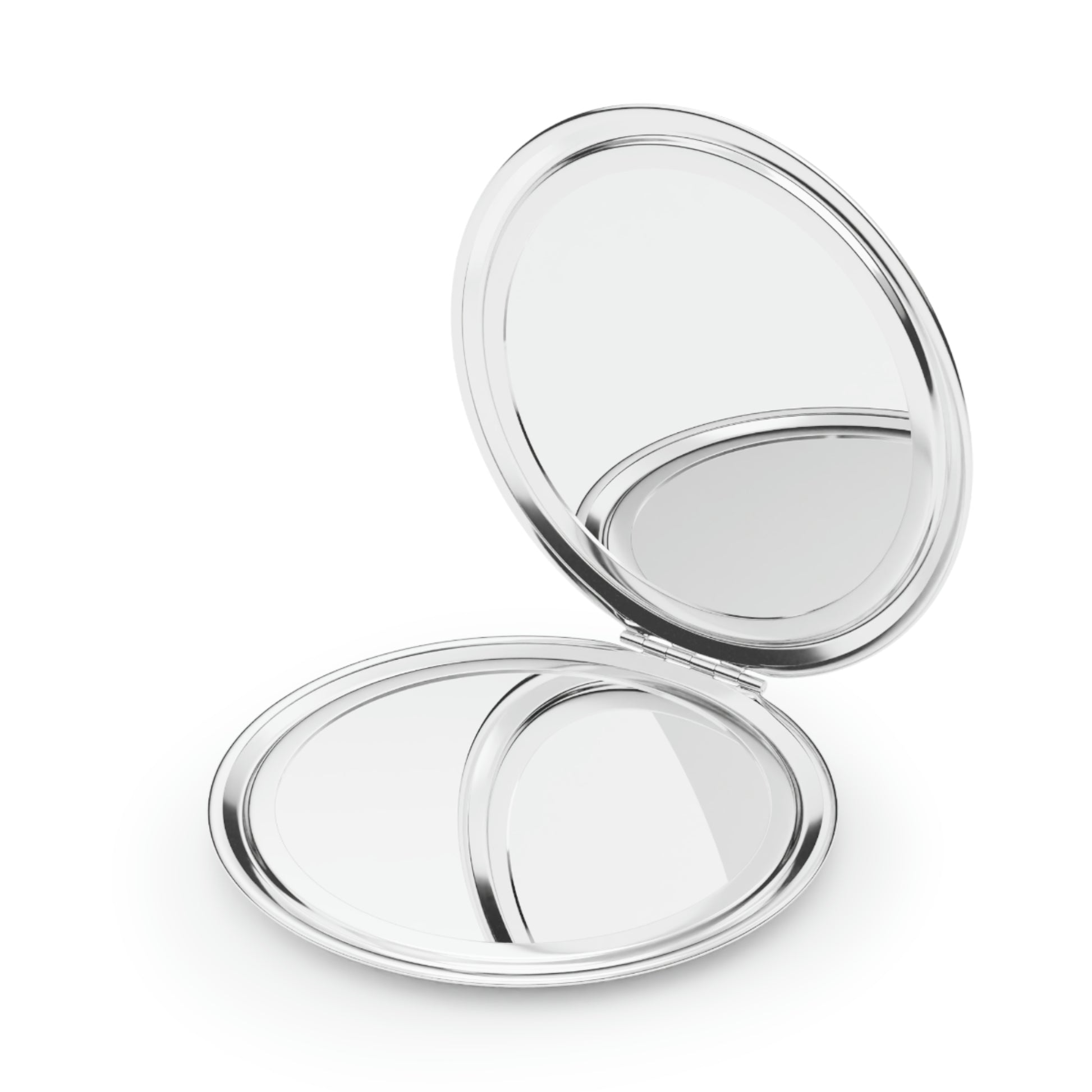 This personalized compact mirror is the perfect makeup gadget for touching up on the go. Made to be travel-friendly, cute, and shiny, it comes with a secure-snap friction closure, a sleek round shape and a metal finish for extra stylish points. Put your designs on the white metal insert and create the perfect travel makeup mirror.